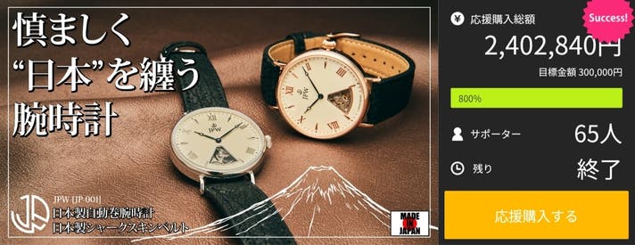 ※生産状況・天候・配送問題などで輸送が遅延する可能性がございます。ご留意ください。 ※使用感等に関する返品・返金はお受けいたしかねます。 ※類似製品が存在する可能性がありますのでご自身の判断でご購入ください。 ※モニター環境によって、画像の色が実物と異なって見える場合がございます。 また、文字盤のマザーオブパールは天然素材です。掲載画像と多少異なる場合がございますので、予めご了承願います。 ※皆様のご購入により量産効率が向上した場合、正規販売価格が販売予定価格より下がる可能性もございます。 ※本文中に記載させていただいたスケジュールは、あくまでプロジェクト公開時点の予定です。応援購入の性質上、配送遅延のおそれがございます。 原則として、配送遅延に伴う応援購入のキャンセルはできませんが、リターン配送予定月から3ヶ月を超えた場合には、希望者に限りキャンセルにて対応させていただきます。 販売方法の性質上、以上の注意点につきまして予めご理解とご了承いただいた上でご購入くださいますようよろしくお願い致します。