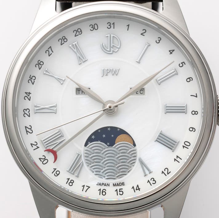 ・JPW【JP-002】ムーンフェイズ腕時計 SSWH(本体:シルバー、文字盤:ホワイト) 1点