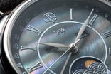 機械式と比べると、数年ごとに必要なオーバーホールが不要だったり、機械式の日差(一日あたりの誤差)±10〜30秒程度が一般的なのに対してクオーツ式は月差(一月あたりの誤差)が±20秒と正確な時刻を表示するための調整頻度が少ないなど、より気軽にこのムーンフェイズを楽しんでいただけます。