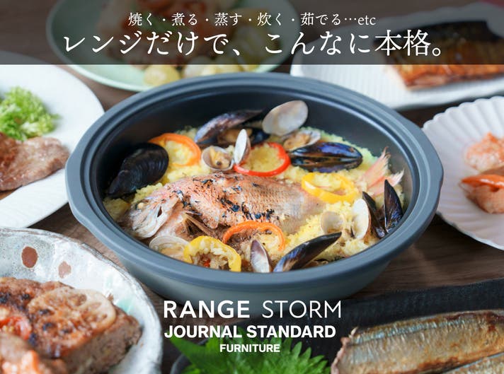 ファッションの視点から暮らしを提案する《JOURNAL STANDARD FURNITURE》と、火を使わず電子レンジで焼き調理を実現する《RANGE STORM》。