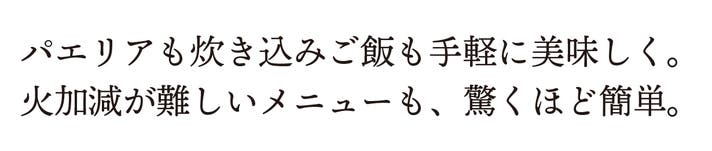 手軽なのに、パエリアは香ばしく華やか、炊き込みご飯は旨みたっぷり。おこげまでしっかり再現します。