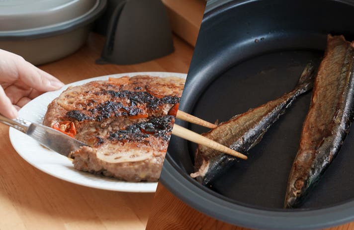火を使わずに電子レンジで焼き魚やステーキなどの焼き調理が可能に。
