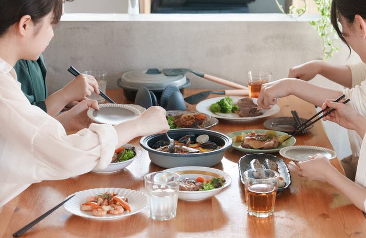 家族で囲む食卓や、友人とのホームパーティーでも活躍。品数を増やしたい時も、食材を入れてレンジにおまかせ。手間なく、もう一品が完成します。