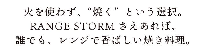 RANGE STORM(レンジストーム)は電子レンジのレンジ機能で焼き調理から煮物まで多彩な料理が可能な電子レンジ調理器です。