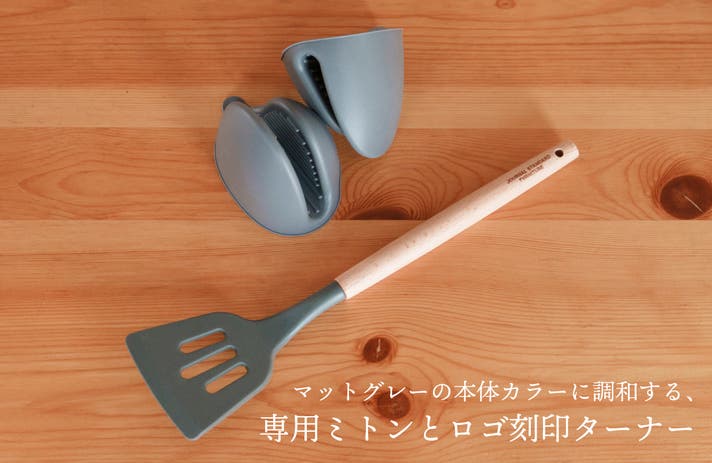 レンジ調理器と同じデザインコンセプトを踏襲した、ターナーとミトンのスペシャルセット。ヴィンテージ感のあるカラーリングが、キッチンにさりげなく“ジャーナルスタンダードファニチャーらしさ”を添えてくれます。