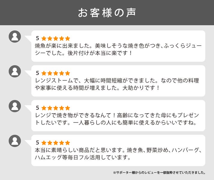だからこそ、伝統のある女子栄養大学健康情報科学研究室のご協力もいただけました。開発者である私も毎日レンジストームを使っていますが、魚を焼く機会が増えただけでなく、料理の幅がひろがり毎日の料理がたのしくなりました。これは使ってみないと分からない感覚かもしれません。