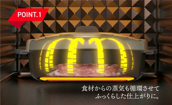 フタをして加熱することで、マイクロ波が直接食材に当たらず、旨みと水分をしっかりキープ。ステーキも、魚も、野菜も、おいしさそのままに仕上がります。