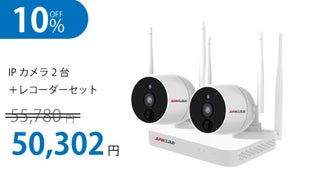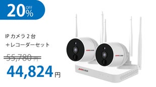 【20%オフ】無線/有線対応屋外IPカメラ2台+10局レコーダーセット
