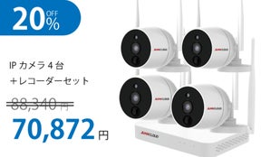 【20%オフ】無線/有線対応屋外IPカメラ4台+10局レコーダーセット