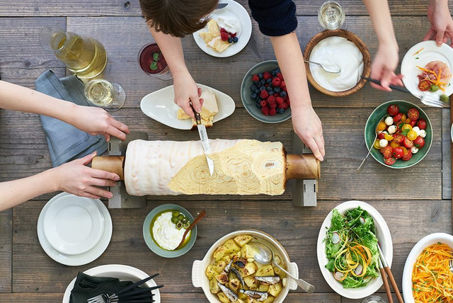 ★焼きあげたアツアツのバウムクーヘンはすぐにみんなでカット!お好きな分だけ切り分けてお召し上がりください!