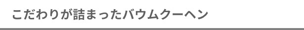 1本ずつ職人がていねいに焼きあげたバウムクーヘン。顔はひとつひとつ違います。特に「端っこ」は、わたしたちがお客様にお見せしていない部分です。でも実は社内にも隠れ「端っこファン」がいるのも事実でした。香ばしい風味が口の中に広がる、いつものバウムクーヘンとは違った味わいです。