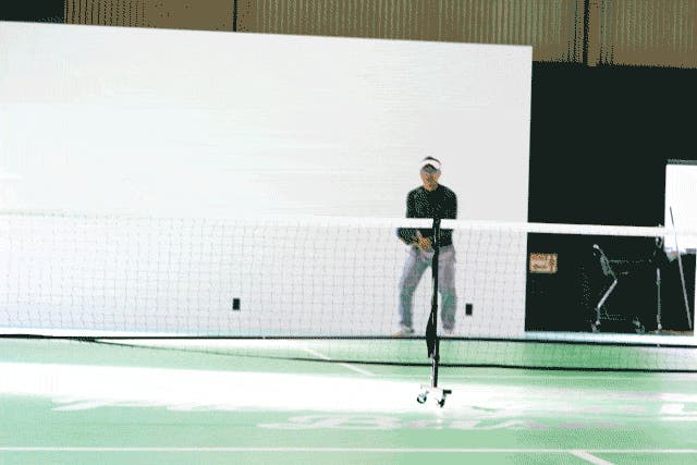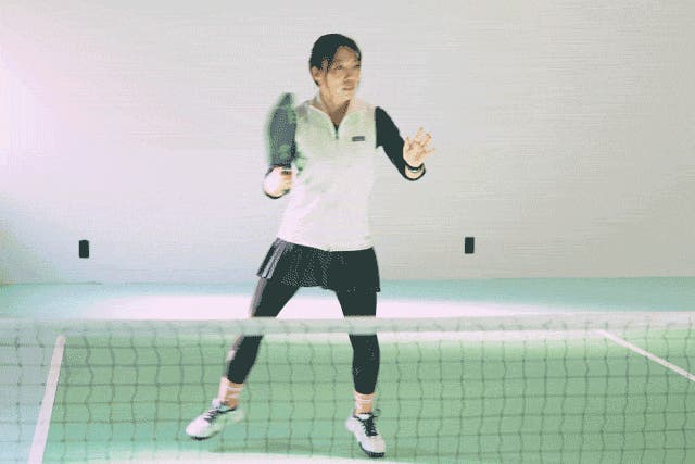 ネット付近で、バウンドさせずにボールを返す、腕を振らず、押すだけでOK。