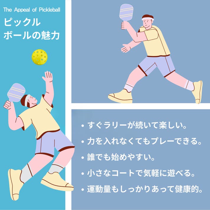 - 誰でもすぐ楽しめるピックルボール。 日本では競技人口約5倍に急成長。