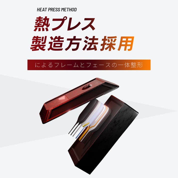 フレームとフェースを一体成形し、高い剛性と反発力を実現。