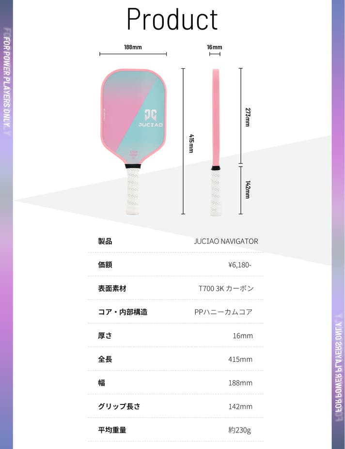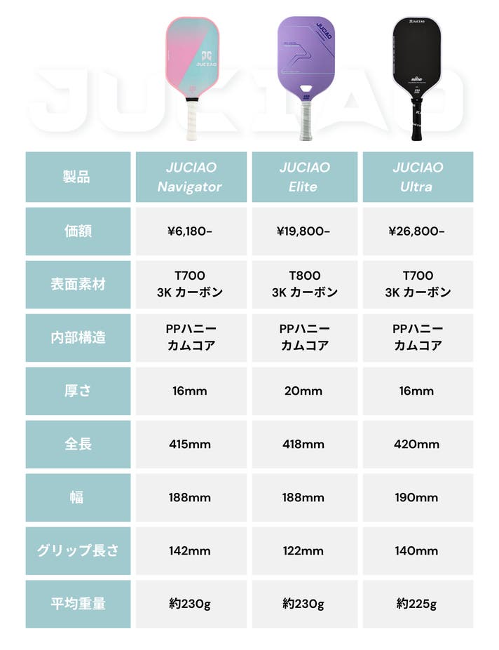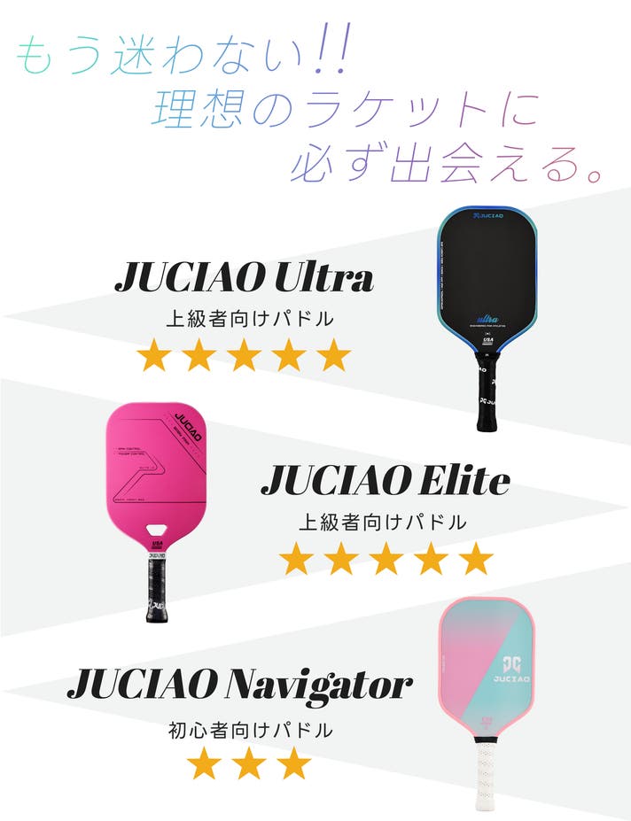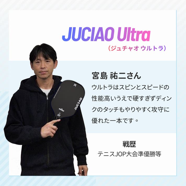 JUCIAOは、プレイヤー目線でパドルを設計し、初心者の方から経験者まで、幅広いニーズにお応えします。