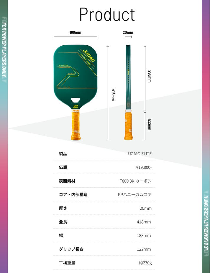 【応援割 30%OFF】ピックルボールパドル JUCIA Elite