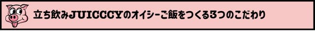 立ち飲みJUICCCYは、“オイシーご飯”と”ウレシー栄養”と”タノシー空間”をお客様にお届けすることで「元気がハジける」お店作りを目指しています!