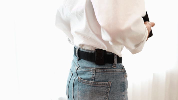 ベルトに付けることで揺れずに密着!