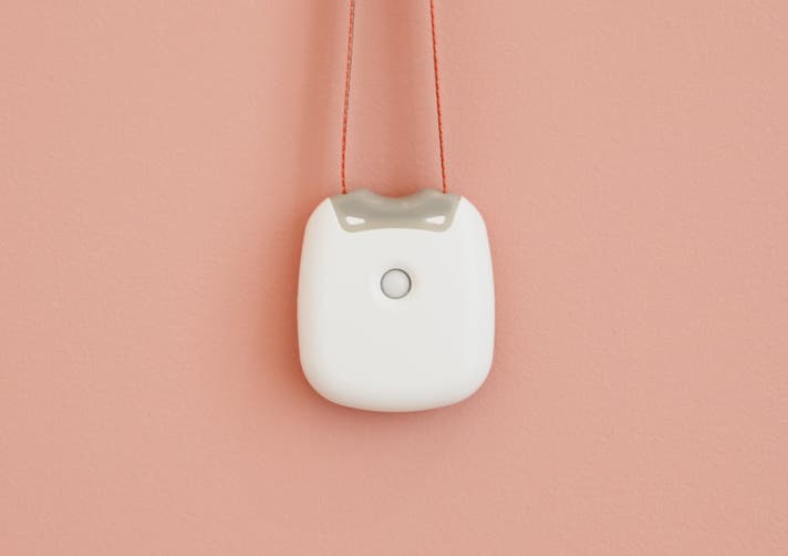 ワンタッチで紐を伸ばして首にかけます