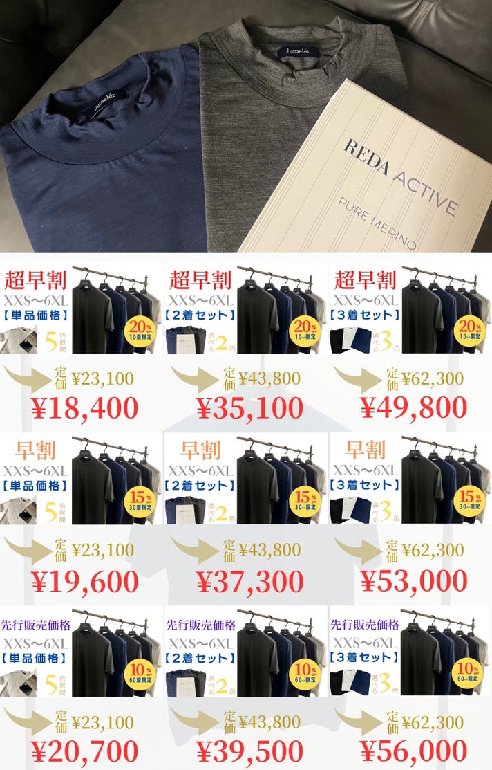 今回、少しでも多くの方に『REDA ACTIVE』シリーズの着心地をご体感いただけるように、『数量限定』最大20%OFFのMakuake特別価格にてご用意させていただきました。