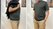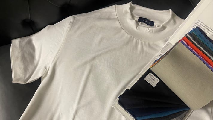 今回ご提供させていただくモックネックシャツは、裾周りをリブ仕様にして仕上げているため、着丈のおさまりも良く、少しばかりではありますが、着丈調整も行えます。