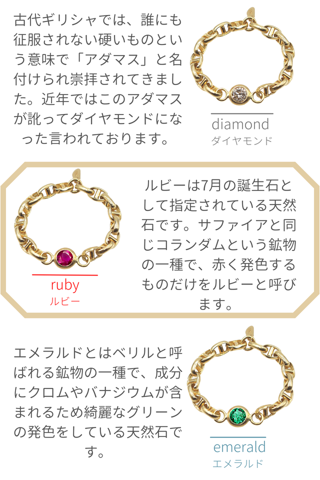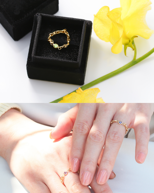 - 18種類の希少な宝石をご用意!選べる中石付きチェーンリング