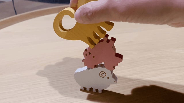 簡単そうですが、じつはこちらの積み木、積む順番や重心をちゃんと考えないと、全然思ったように積めません。(石花さんの作品、本当にすごいんです!)