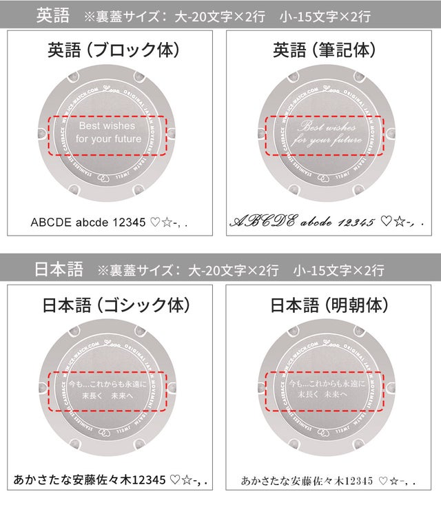 ※ 実際の刻印位置は、ケースの大きさや文字数によってバランス調整させていただく場合がございます。