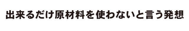 ❷ 消費する材料を、出来る限り削ぎ落としたミニマルデザインを追求しました。