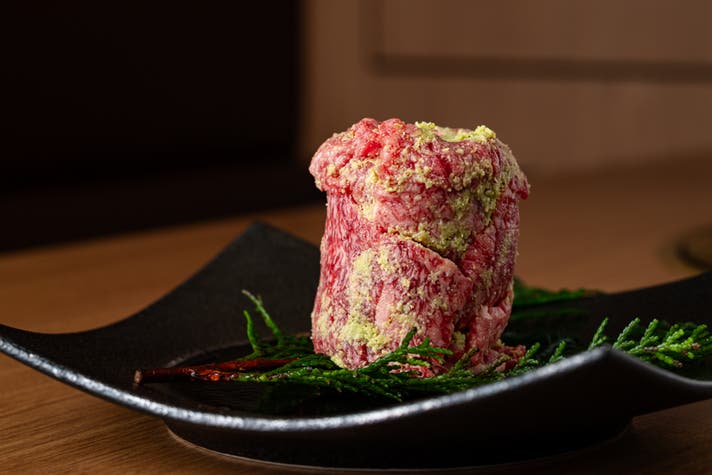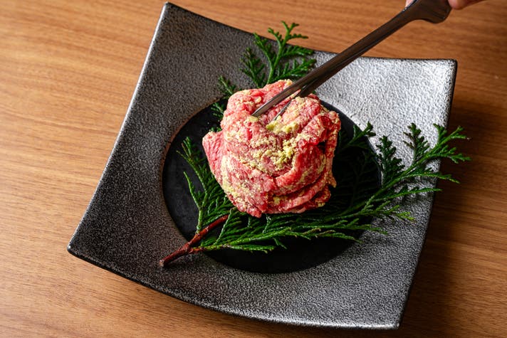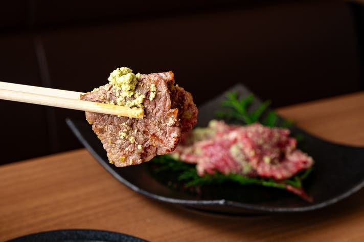 清涼感あふれる生ワサビが肉の旨味を引き立て、独特の風味を演出します。