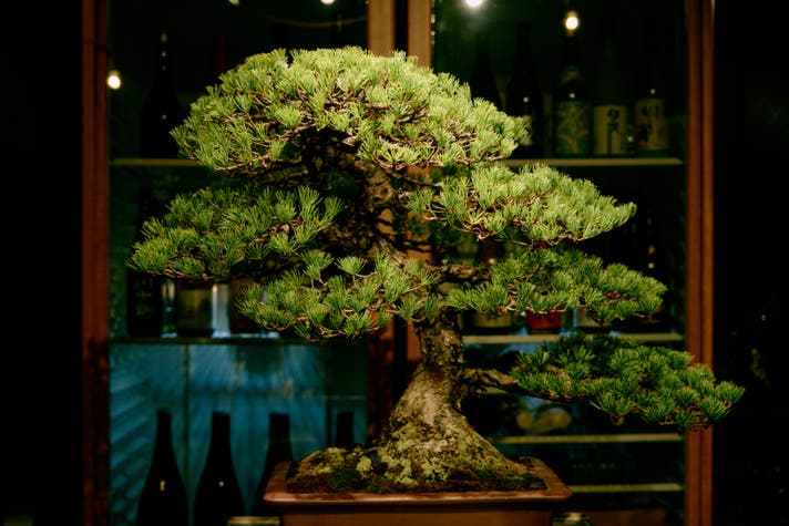 店内に入ると、まず目に飛び込んでくるのが見事な盆栽。