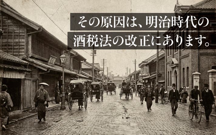 日清・日露戦争の戦費をはじめ、国の支出をまかなうため、嗜好品には高額な税金がかかっていました。特に需要が大きかった日本酒にはとても高い税率が課せられていました。さらに、税金が課せられるのは「蔵で製造した年」。