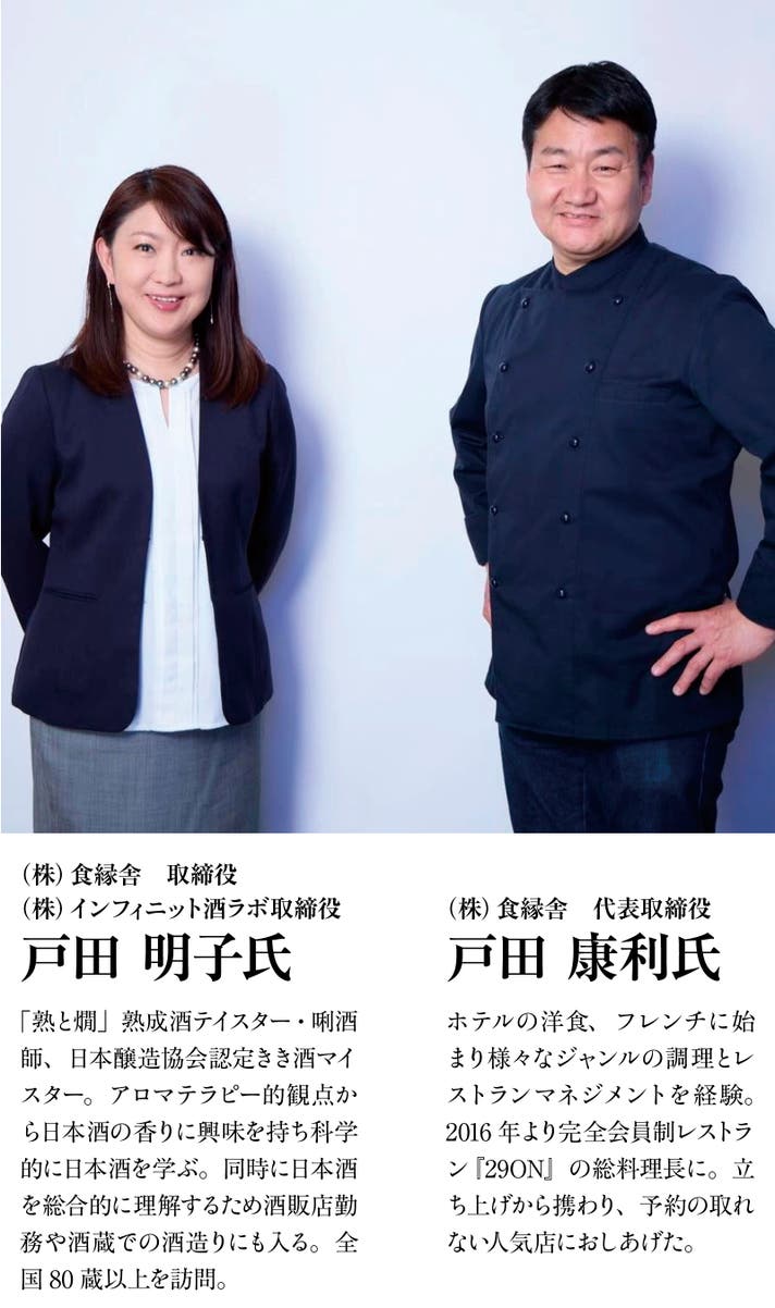 今回のペアリングディナーにご協力いただくのは、「熟と燗」で定期的に熟成酒のテイスティング・評価を担ってくださっている日本酒のプロ、戸田明子氏と、完全会員制レストラン「29ON」元総料理長の戸田康利氏。