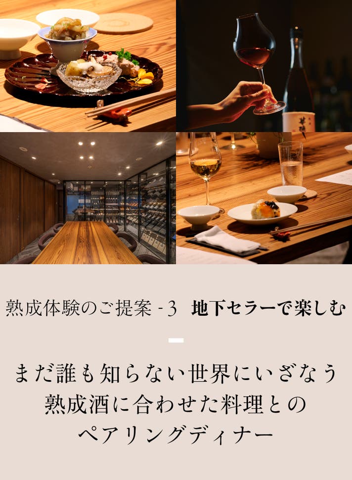 「熟と燗」が誇る、通常非公開の地下セラーを舞台にした、一夜限りのスペシャルディナーにご招待。