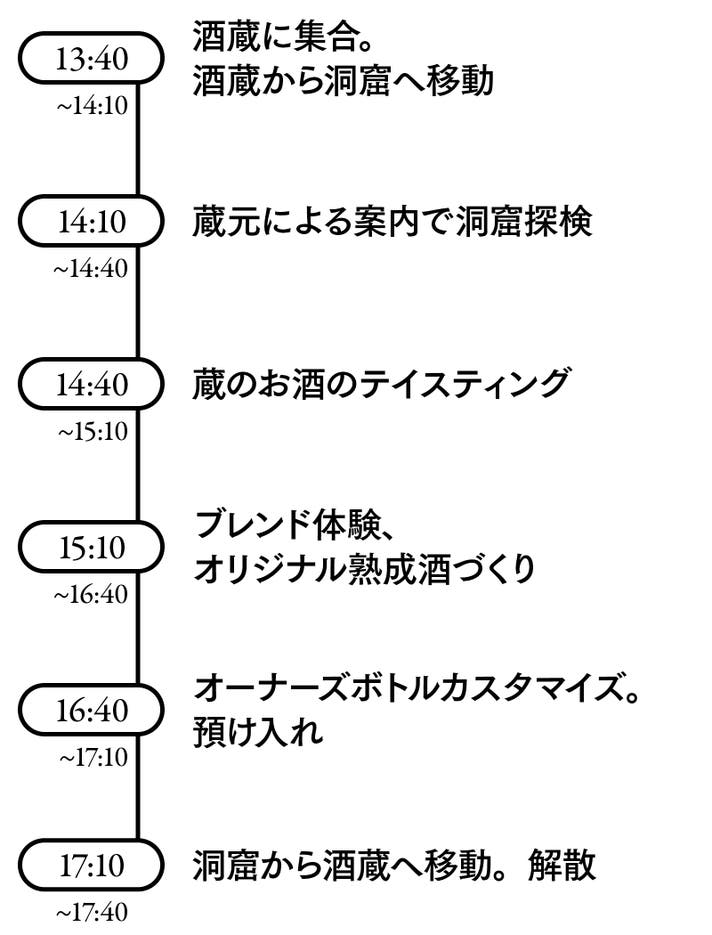 最後に、完成したオリジナルブレンドをボトルでお持ち帰りいただきます。さらに、熟成酒の味わいを最適に引き出す特製グラスもお渡しいたします。ご自宅でも、洞窟で感じた余韻とともにお楽しみください。