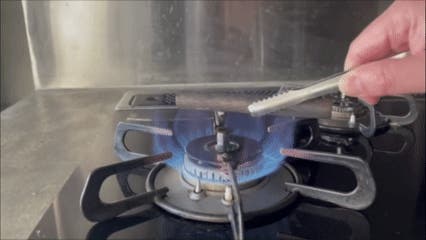 A.ご家庭のコンロやガスバーナーで、表面を軽くあぶる程度で行ってください。焦がしすぎないことがポイントです。