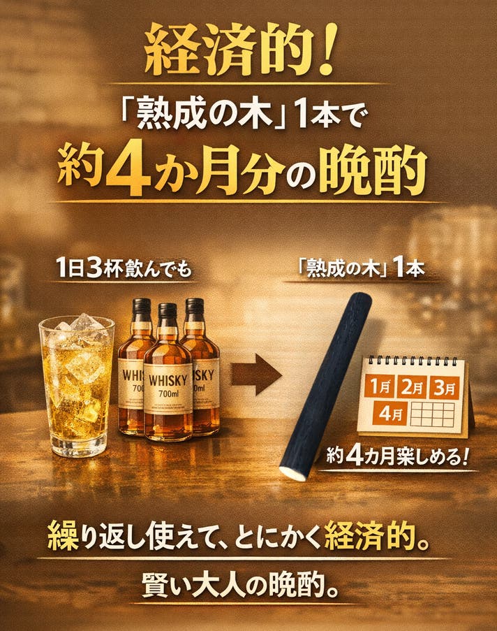 1本の棒で、複数のボトル、異なる熟成の表情。ウイスキーを“飲む”だけでなく、育てながら味の変化を楽しむ体験が広がり、とても経済的です。