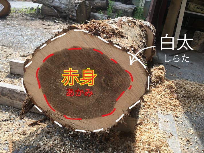使っているのは、みずならの“赤身部分”。丸太の中心に近く、外側の白太を除いた部分で、年輪が締まりやすく、材質が安定しているため、樽材としても評価される部位のみを選別しています。