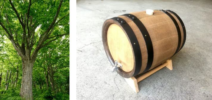 A.北海道産のミズナラ銘木由来の木材を使用しています。家具や木工にも使われる銘木を加工する過程で生まれた素材を、熟成用として仕立てています。
