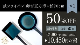 50%OFF 卵哲 正方形+鉄フライパン哲20cm セット