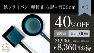 40%OFF 卵哲 正方形+鉄フライパン哲20cm セット