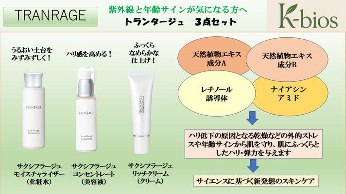 ・販売名:トランタージュ(化粧水、美容液、クリーム)3点セット