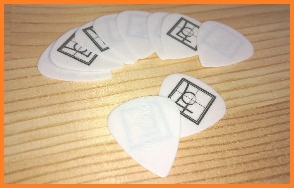 自分でカッターで溝をつけているということでしたが「小さなピックを手で押さえ、一枚一枚カッターで刻みを入れていると、数枚でイヤになるよね~」と。