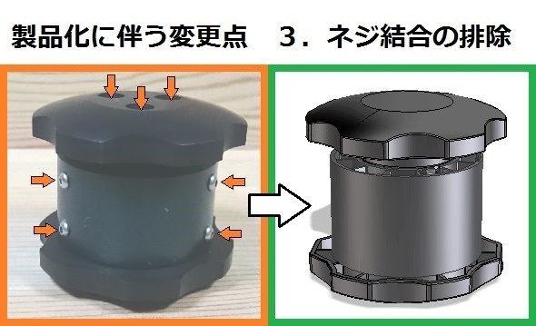 3.ねじでの結合を無くし、一体化もしくは接着結合にします。