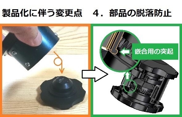 4.使用しない時に各バーツが脱落しないように軽嵌合できる構造にします。