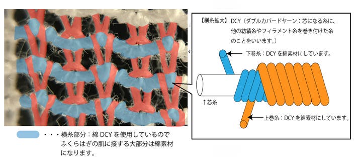 香川県丸亀市で女性用のストッキングを製造してきましたが、その製造技術を生かして「医療・スポーツ・健康分野」の商品開発を進めてきました。