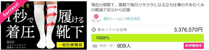 医療分野としては一般医療機器製造販売業許可を取得し、自社で弾性ストッキングの企画・製造販売を行えるようになりMakuakeでも今まで3回プロジェクトを実行しました。