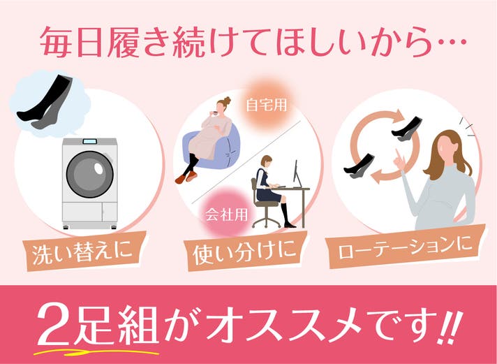 ・「今日は洗濯してないから履けない」そんな日を作らないために、2足組をおすすめしています。