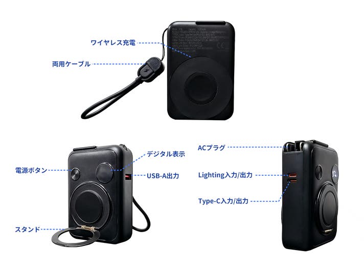 - ACプラグ+ツーインワンケーブル付きで、面倒な充電アイテムともおさらば。