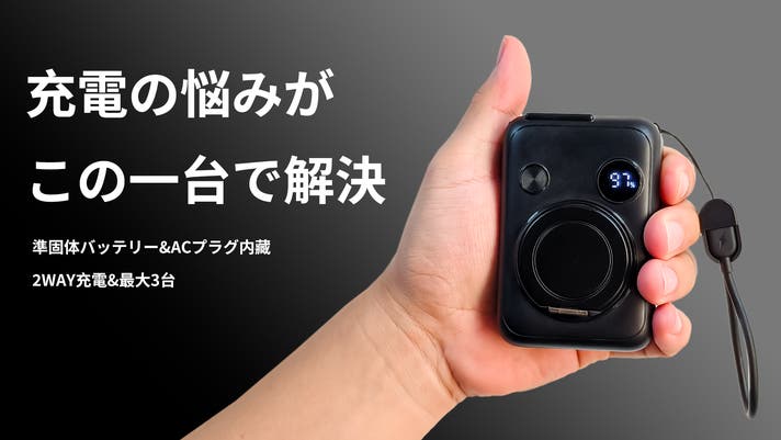 今回、高い安全性と利便性を両立した準固体電池搭載のK18を発売いたします。発火などのリスクを大幅に低減し、長期間にわたりご利用いただけます。小型ながら大容量で、ACプラグとツーインワンケーブル1本でスマホ・イヤホン・スマートウォッチの充電をまかなえます。